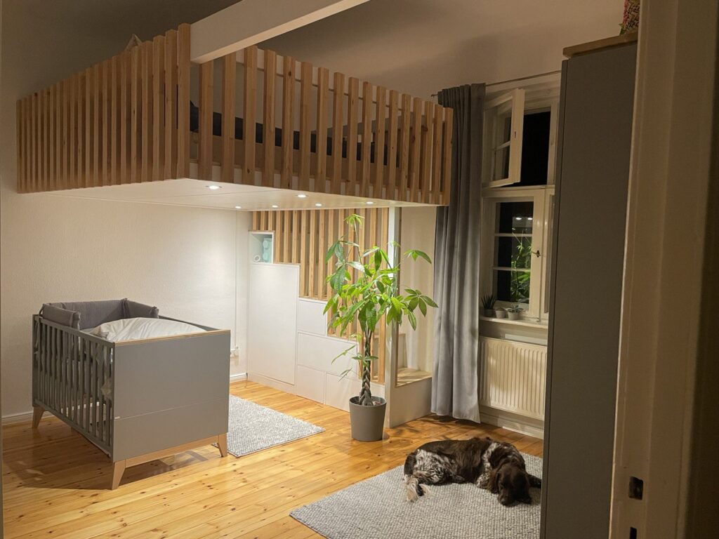 We proudly present one of our simplest, yet most practical designs. This loft bed is based on a single large support beam going from one wall to another. It allows the construction to be rock solid.